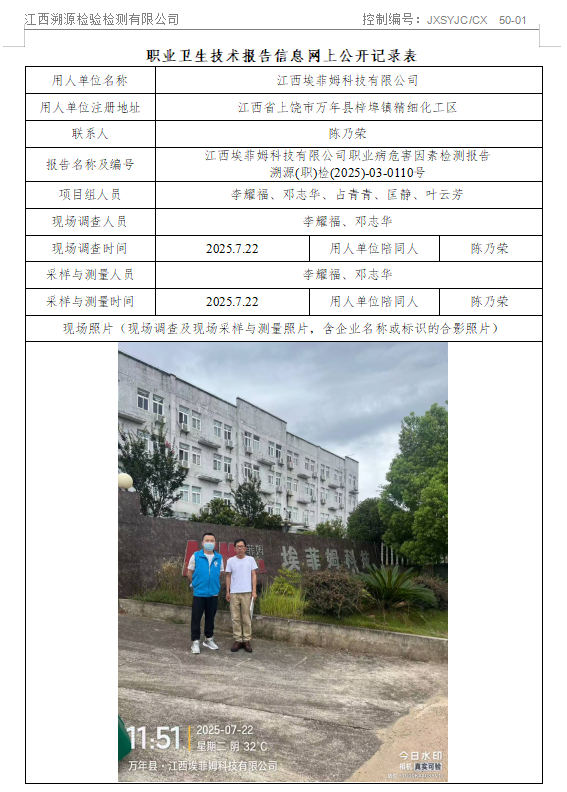 江西溯源检验检测公司于2021年9月9日取得职业卫生技术服务机构资质,涵盖职业卫生**类业务范围所有范围(1.采矿业;2.化工、石化及医药;3.冶金、建材;4.机械制造、电力、纺织、建筑和交通运输等行业领域)。