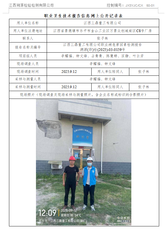 江西溯源检验检测公司于2021年9月9日取得职业卫生技术服务机构资质,涵盖职业卫生**类业务范围所有范围(1.采矿业;2.化工、石化及医药;3.冶金、建材;4.机械制造、电力、纺织、建筑和交通运输等行业领域)。