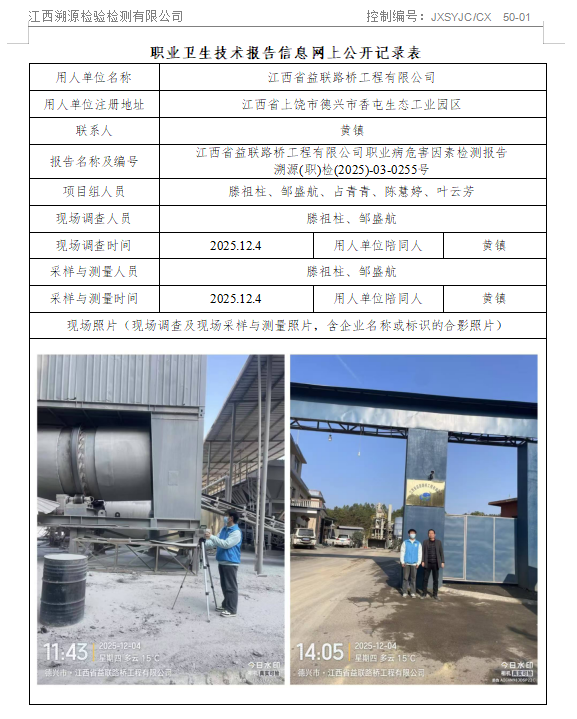 江西溯源检验检测公司于2021年9月9日取得职业卫生技术服务机构资质,涵盖职业卫生**类业务范围所有范围(1.采矿业;2.化工、石化及医药;3.冶金、建材;4.机械制造、电力、纺织、建筑和交通运输等行业领域)。
