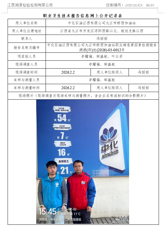 中化石油江西有限公司九江市桥西加油站职业病危害因素检测报告