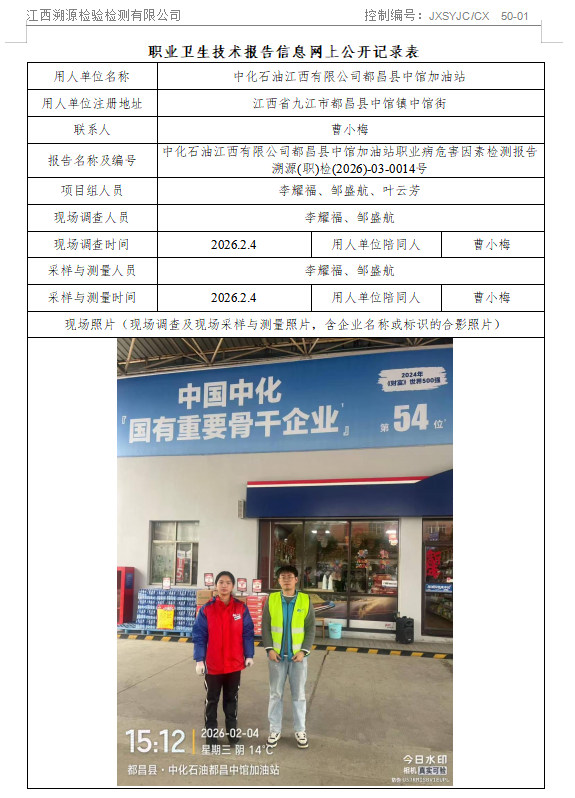 中化石油江西有限公司都昌县中馆加油站职业病危害因素检测报告