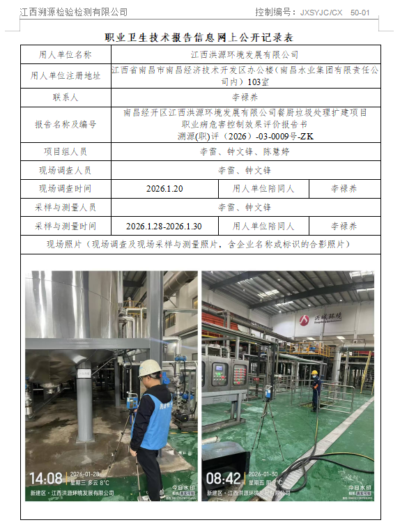 南昌经开区江西洪源环境发展有限公司餐厨垃圾处理扩建项目职业病危害控制效果评价报告书