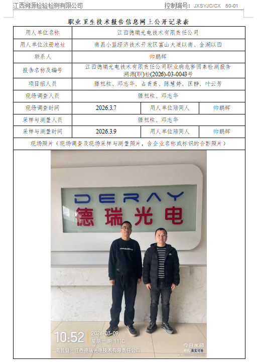 江西德瑞光电技术有限责任公司职业病危害因素检测报告