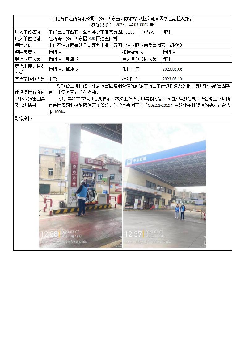 中化石油江西有限公司萍乡市湘东五四加油站职业病危害因素定期检测报告